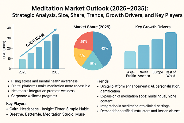 - Corporate Adoption: Meditation programs integrated into workplace wellness strategies to reduce stress and improve focus.
